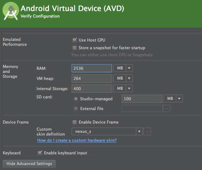 我的安卓工作室版本是1.3,我的个人电脑是英特尔-i5和8G内存MacBookPro。