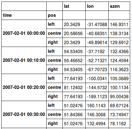 columns = ['lat', 'lon', 'szen']
