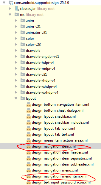 </android.support.design.widget.NavigationView>导航项的所有参数(您可以更改)都位于这里( ...\sdk\extras\android\support\design\res\layout\design_navigation_item.xml文件的路径)
