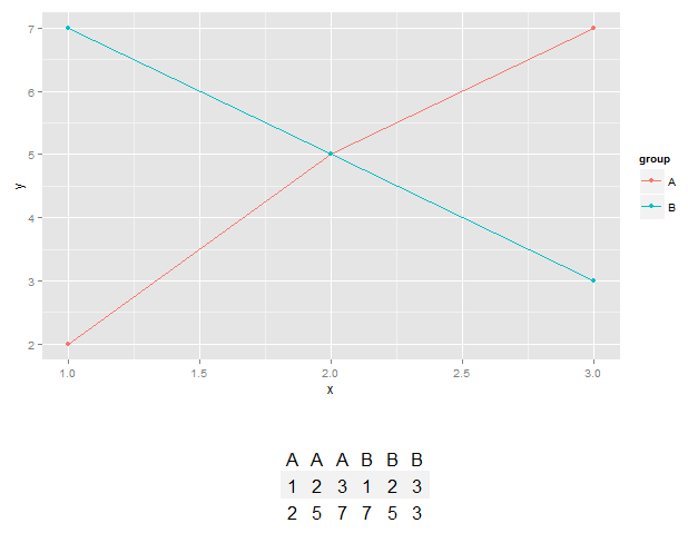 虽然我可以创建多行图形使用ggplot,但我不知道如何添加表。