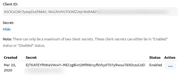 您将收到一个Client ID和一个Secret,您将使用它们来生成Bearer。