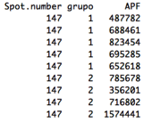 gel <- data.frame(Spot.number, grupo, APF)