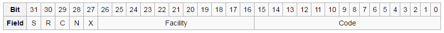 请参阅此维基百科主题HRESULT描述Microsoft用于HRESULT错误代码的错误代码格式。从本主题来看,关于如何使用bits的格式是: