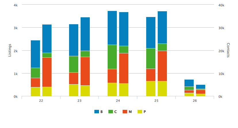 h$series(name = city,data = lc[lc$City==city,"Contacts"],stack='contacts',yAxis = 1,color=colors[[city]],linkedTo=paste0(city,"listings"))