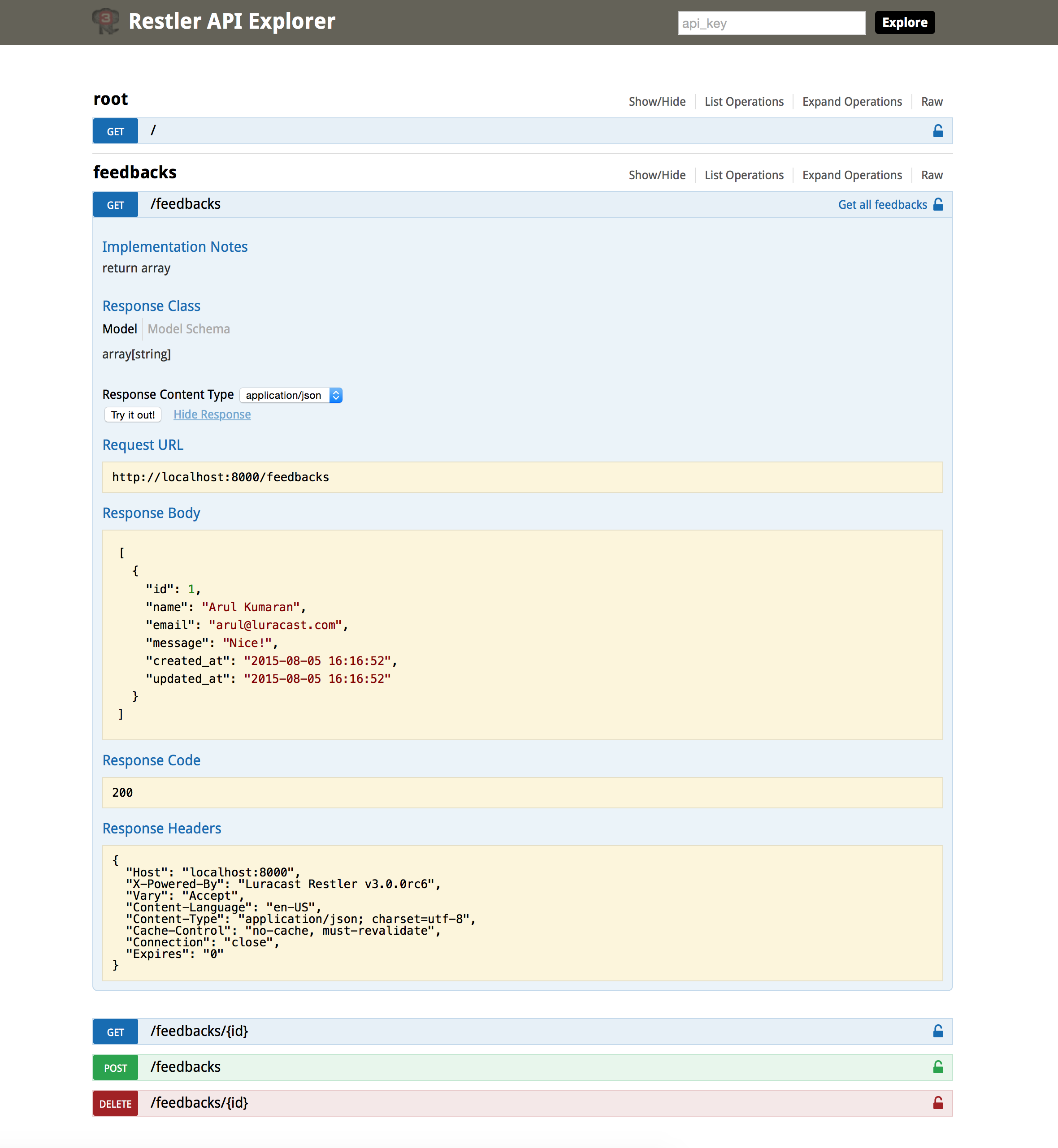 为了帮助您满足这种需求,我们在餐厅/应用包中创建了restler应用程序模板。每个分支对于不同的用例都有不同的模板,您需要的是在雄辩分支中。