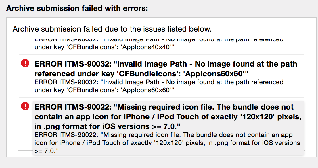 解决这个问题的方法也是检查"IOS 7及更高版本的复选框“,然后填写所需的图标。