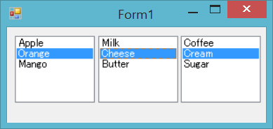 下面是您可能想进一步探索的示例,尝试将ListBox添加到您的表单中(在本示例3个列表框中),它应该如下所示: