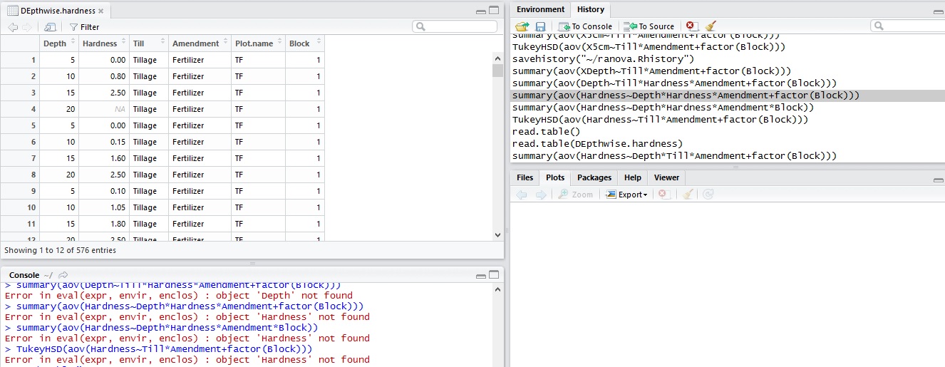 summary(aov(Hardness~Depth*Till *Amendment+factor(Block), data = DEpthwise.hardness))