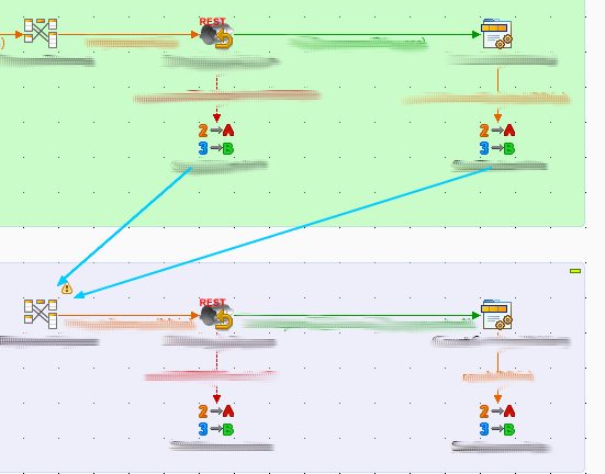 我附加了一个屏幕,蓝色箭头,理想的情况(但塔伦德不接受)。如果我的第一个webservice有问题,我必须继续工作。