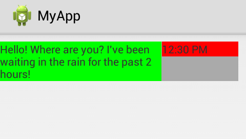 这个问题的作者真正提出的问题是,如何让TextView扩展以适应其中的消息,而不溢出时间TextView,并且不留下空白。