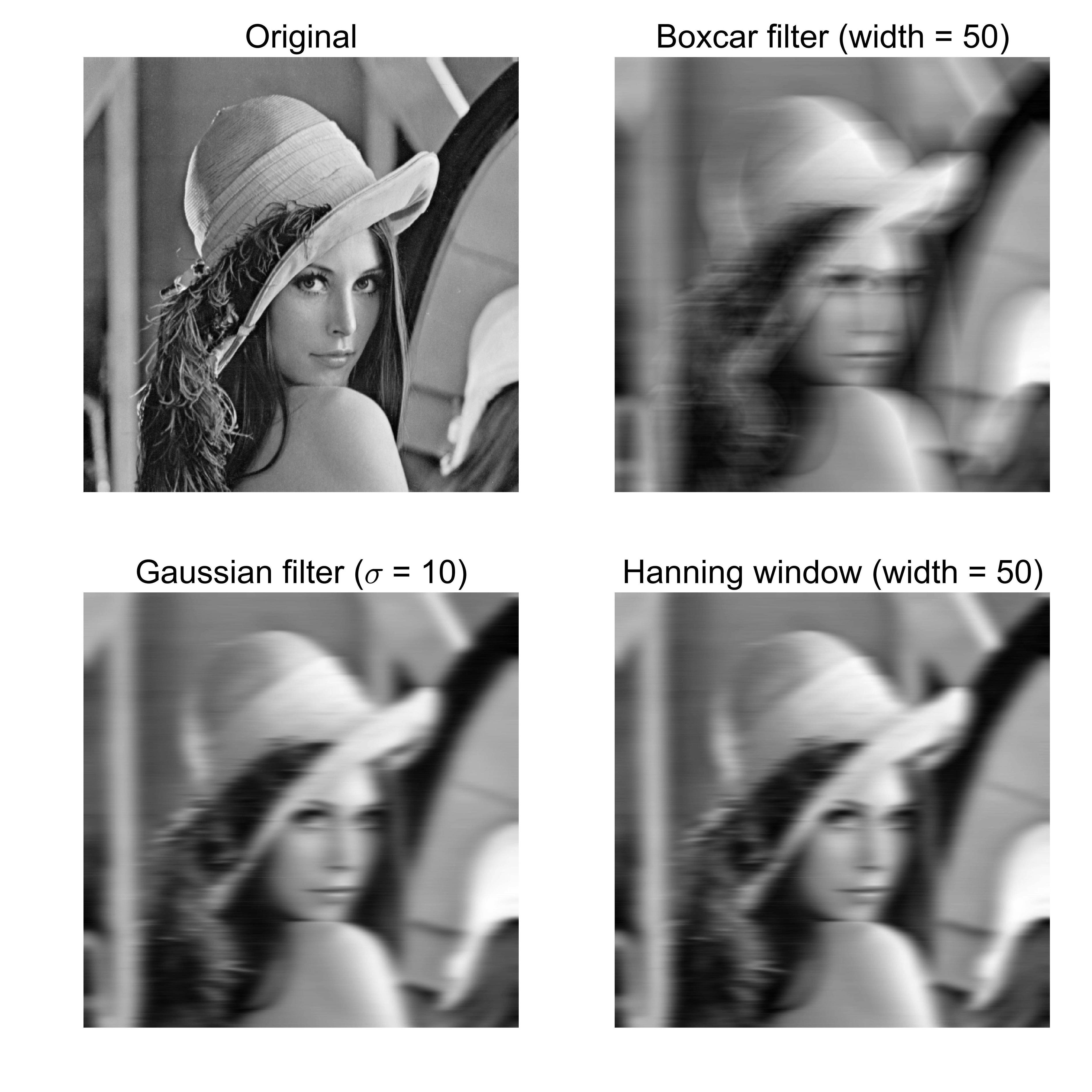 hanning = ndimage.convolve1d(img, kern, 1)以下是各种输出的样子: