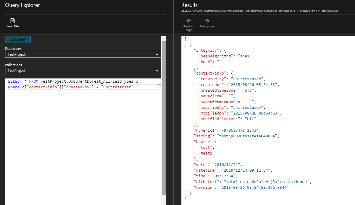 SELECT * FROM c WHERE c.context-info.created-by = "unittestuser"