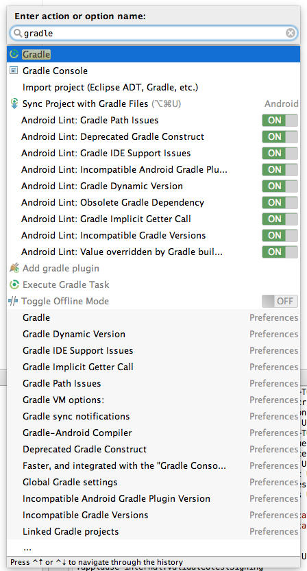 无论如何,有Find Action...命令,您可以使用它在Android中找到“所有”类型的东西。