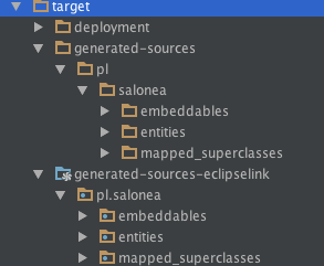 }2)接下来,我认为这个元模型类可能是特定于实现的。因此,我使用org.eclipse.persistence.internal.jpa.modelgen.CanonicalModelProcessor和target/generated-sources-eclipselink (如在图片上)与EclipseLink类似地生成了它们。