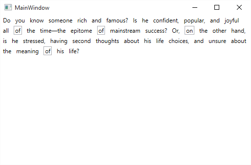 我想在WPF中加载一段文字,并用可编辑的文本框替换它的一些特定单词。我怎么能这么做?
