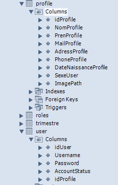 我有一个Spring新web应用程序(Java),在有了用户登录(使用用户名和密码)之后,我想让用户能够添加一个新用户,直到那时一切都是好的。每个用户都有一个自动描述(AI)的主密钥iduser和一个外键idprofile。表配置文件包含有关用户的信息,它的idprofile是主键(必须与用户表中的ipdrofile相同)。