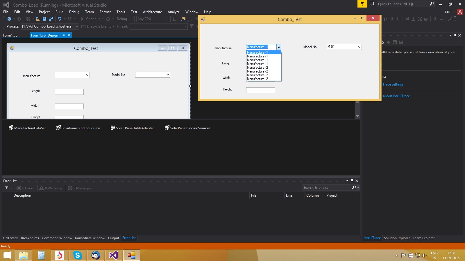 我的表单窗口是这样的。我只添加了组合框,然后使用数据库项。我需要样例程序过滤组合框,没有重复的制造名称。它应该看起来像过滤器选项,在Excel.Provide制造是合并&中心,而在excel做。在这里,它应该显示生产清单与过滤值的型号。