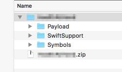 在这里,如果您得到一个文件夹(与.ipa文件的名称相同),其中包含以下子文件夹: