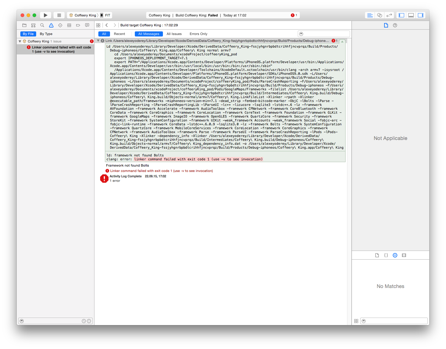 ld:框架未找到螺栓 clang: error:链接器命令失败,退出代码1(使用-v查看调用)
