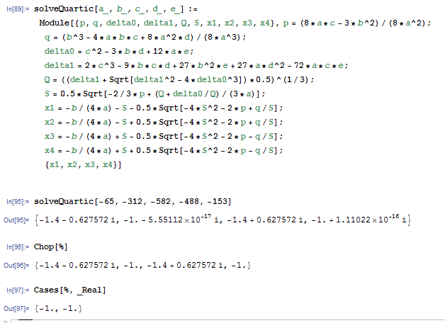 function [res] = solveQuarticReals(a, b, c, d, e)