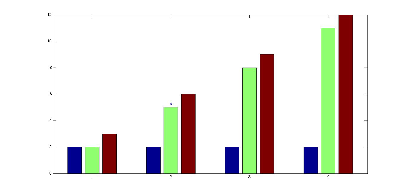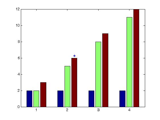 如果您想在组的中心标记一个条形图,这个方法可以工作,但是如果您想标记一个组中的第一个组,您必须用x轴中的偏移值来调整*的位置。