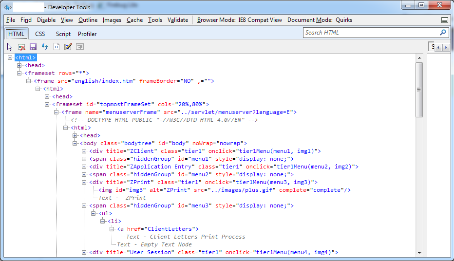 以下是来自IE Developer工具的结构的HTML代码: