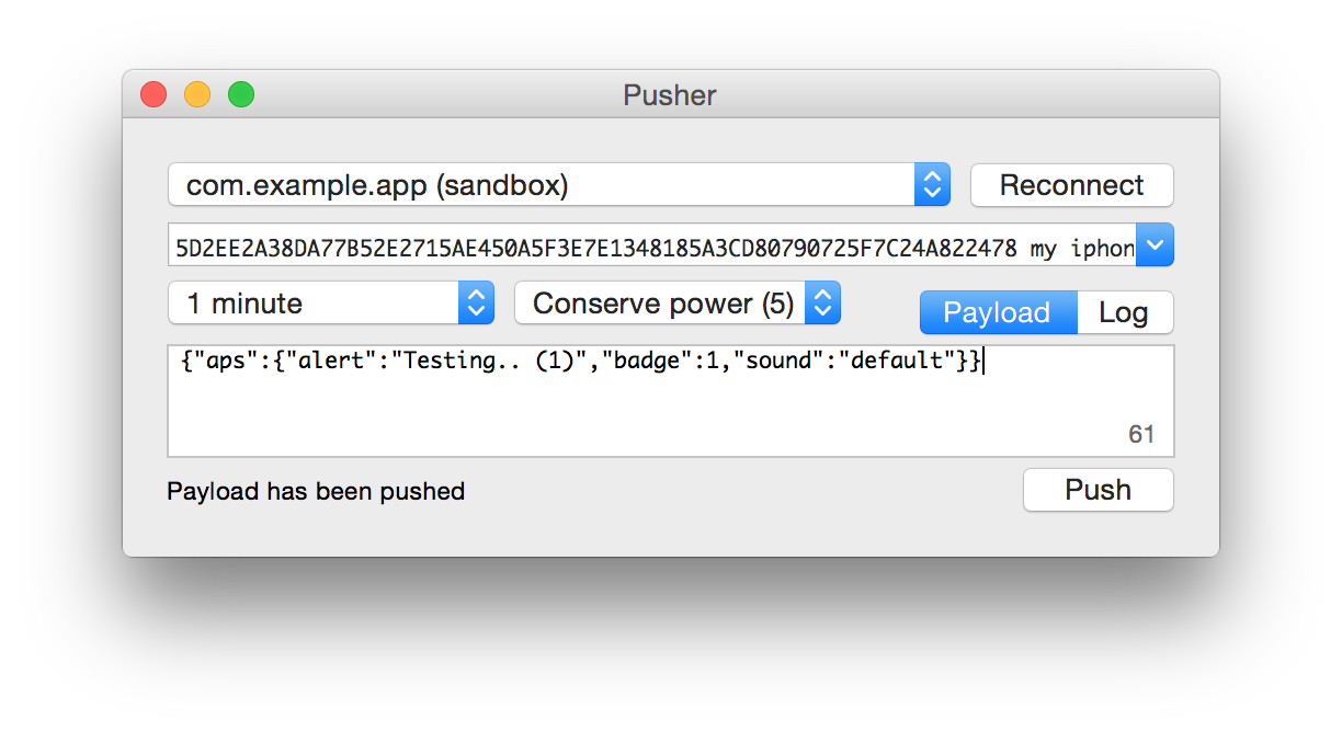 根据我的应用程序的日志,该设备似乎正确地注册到Push for iOS8服务,并且我还能够使用https://github.com/nomad/houston向我的设备发送推送通知(使用的证书与我上传到push for iOS8服务的证书相同,但转换为.pem格式)。
