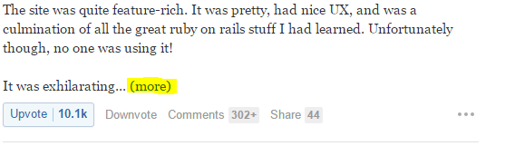 看第一个答案,有一个“更多”的标签女巫表示有更多的文本隐藏。