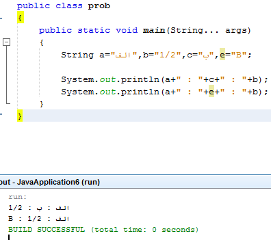 String a="الف",b="1/2",c="ب",e="B";
