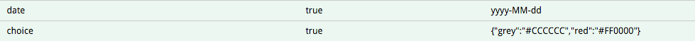 我还没有找到任何关于它的文档,所以我不得不查看源代码。这是FormTypeParser类,实际上是解析FormType的地方,您可以看到格式化字段是如何设置的。