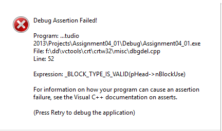 我正在为我的大学C++课程中的一个作业编写代码,这个程序的目的是使用一个类创建一个动态分配的数组。当我的对象超出作用域时,我得到一个调试断言失败的错误,因为我要双倍删除指向新创建的数组的指针。我不知道这种情况是在哪里发生的,因为我在整个类中只使用了两次delete[]。这是我的消息来源:#包括