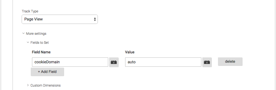 重要:在你开始之前 如果您试图跨单个域的许多不同分区跟踪用户,例如: shopping.lunametrics.com www.lunametrics.com admin.lunametrics.com您对跨域跟踪不感兴趣,您对子域跟踪感兴趣。实现这一目标的最佳方法是添加“cookieDomain”字段以设置,并将其值设置为auto。这将指示跟踪器将cookie提供给它能够使用的所有子域。