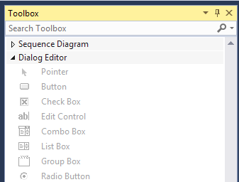另一方面,当我从头开始创建一个新的MFC项目时,包含对话框项的工具箱可以正常工作。