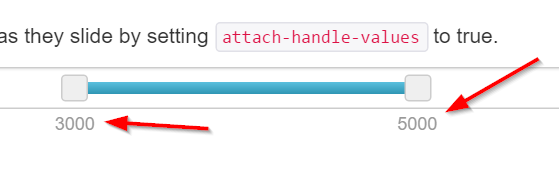 当我从attach-handle-values='true'插件将range-slider设置为range-slider时,这些值不会显示在演示的最后一个示例中。我遗漏了什么?