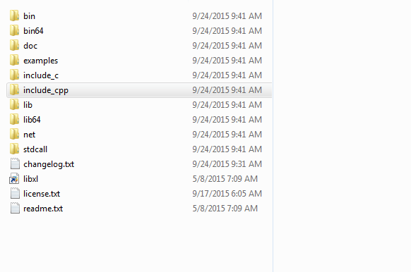 我想在visual studio中使用libxl库,我知道我必须在每个项目的属性部分添加一些术语才能使用新的库,但是这个库的文件夹(我下载它很明显)包含许多子文件夹,所以我不知道应该在哪里复制每个子文件夹。