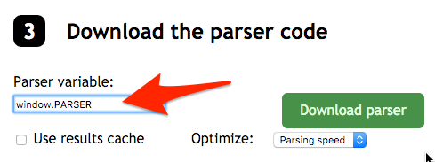 您确实需要包括下载的parser.js。您需要在PEG.js web版本中指定一个浏览器友好的全局变量并重新下载。