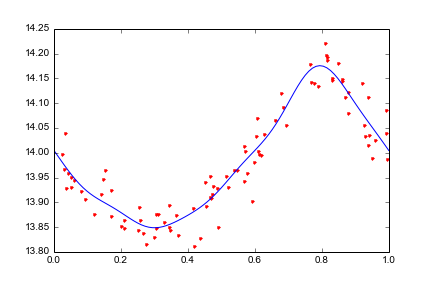 per=0.178556这给出了最终的傅里叶拟合,实际上,最大周期是0.17。问题是,这个数字指定了傅立叶级数中存在的最长周期。该函数只有0.17或更短的部分。很明显,你是在期待一个周期~1的契合,所以它永远无法恰当地近似。您应该指定per=1.0。该算法没有什么问题;快速编写类似的算法给出了同样的输出和可信的结果: