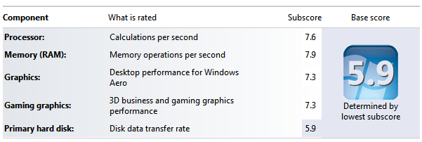 下面是Microsoft对我的系统进行的有价值的评级(从最低1.0到最大7.9)