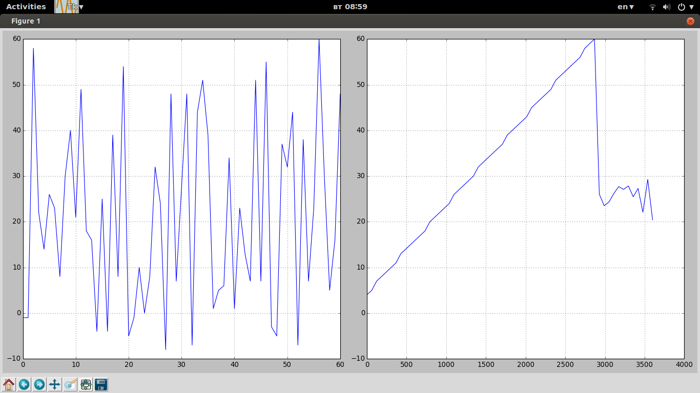 vorac@laptop:~/test$ ./print.py | ./read.py这是最终结果。第一个脚本从设备中读取数据,第二个脚本在两个不同的时间框架内绘制数据(所显示的是随机数)。