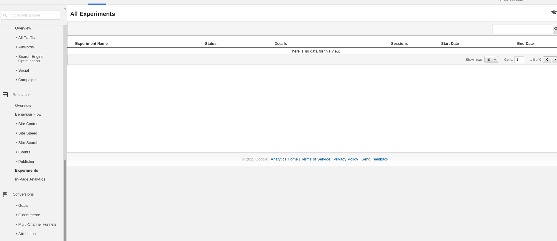 我试着在Google分析中做一个实验。然而,所有的可提供的文件在线似乎都过时了。我可以访问Behaviour -> Experiments区域,这似乎是网站上唯一提到实验的地方,但是没有办法创建一个。