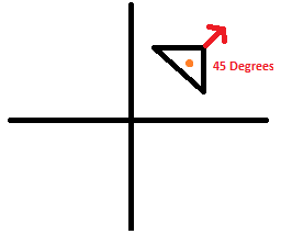 假设我在X,Y空间中有一个已知位置的无人机(X1,Y1),相对于坐标系中的原点,它的方位为45度(见下面的例子)。