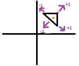 知道无人机有向前和向后运动的推力输入(从+1 (向前)到-1 (向后);左、右(从+1 (右)到-1 (左))。关于无人机正面(见下面紫色显示的例子)。
