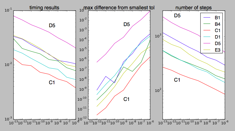 重申一下--我的问题是,为什么不同问题之间的误差以几乎1E+06的因子变化,尽管错误是以容忍为尺度的。当然,C1是“最温和的”,而D5在“近日点”有戏剧性的峰值,但我认为这个例程会在内部调整步长,这样错误就会相似。