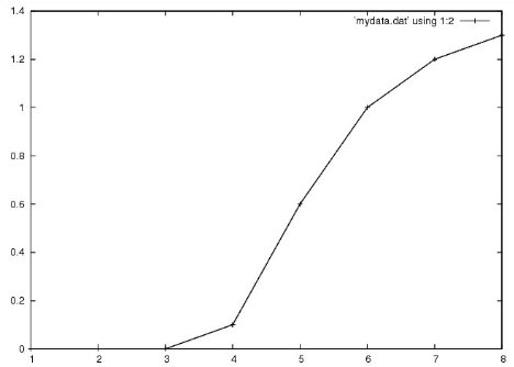 quit您将需要文件mydata.dat的一些数据,例如来自http://lowrank.net/gnuplot/datafile2-e.html的ref。rd=ssl#hl=en&q=gnuplot+plot+file