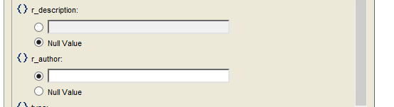 在BIRT报告中,有两个字符串文本框参数在“编辑参数”页面上看起来是相同的,并且在“默认值”框中都是空的。但是,当我选择运行报表时,一个默认为"Null Value“选择,而另一个默认为空字符串。如何配置所使用的默认值?两个参数都不是数据集使用的,因为它们只是文本。