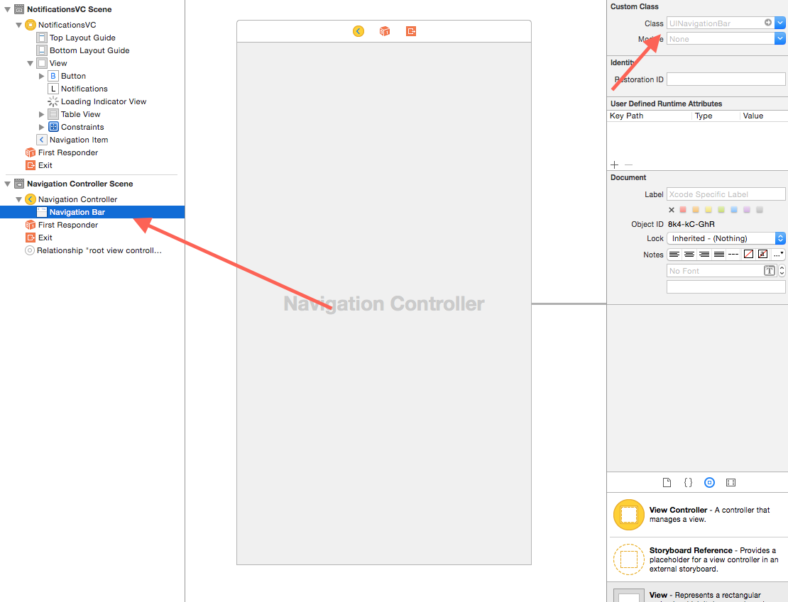 答案是将UINavigationController和UITabBarController结合起来。这里是一些例子-您将需要一个导航控制器,它将负责您的导航栏不变后,改变选项卡。下面是故事板的样子: