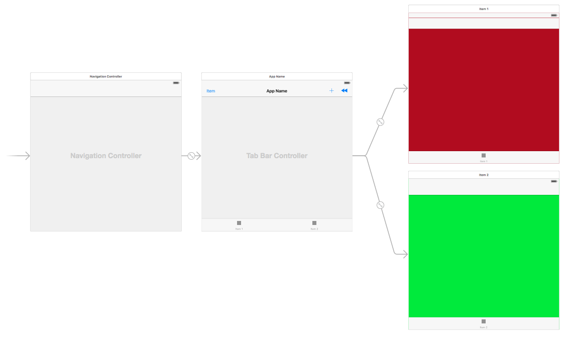 我有一个故事机器人,它有一个UITabViewController,提供四个不同的选项卡。每个选项卡都有这样的导航条