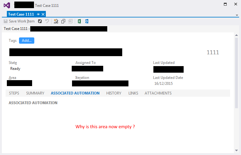 从几天以来,我再也不能将测试自动化与我的测试用例联系起来。可能与12月10日更新时引入的更改有关:https://www.visualstudio.com/news/2015-dec-10-vso