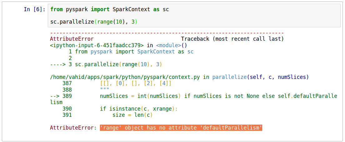 sc.parallelize([1, 2, 3, 4, 5, 6, 7, 8, 9, 10],4).map(lambda x: x**2).sum()我得到了385的预期答案。因此,关键是getOrCreate方法,因为它允许您找到现有的上下文并使用它。