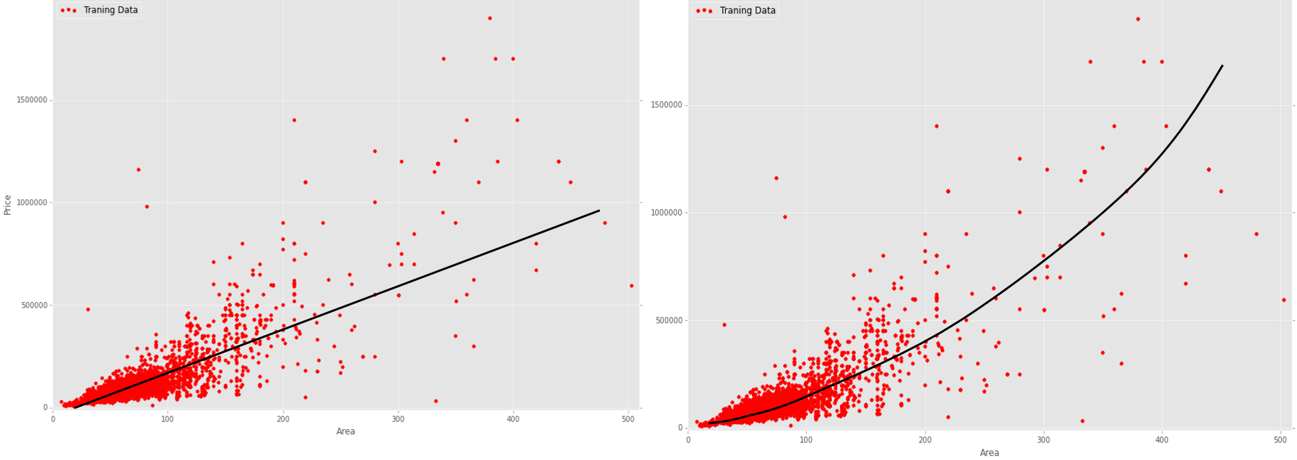 使用非线性算法可以减少训练集上的误差,因为您将使用一条更适合您的数据的曲线。然而,它可能导致过度拟合。